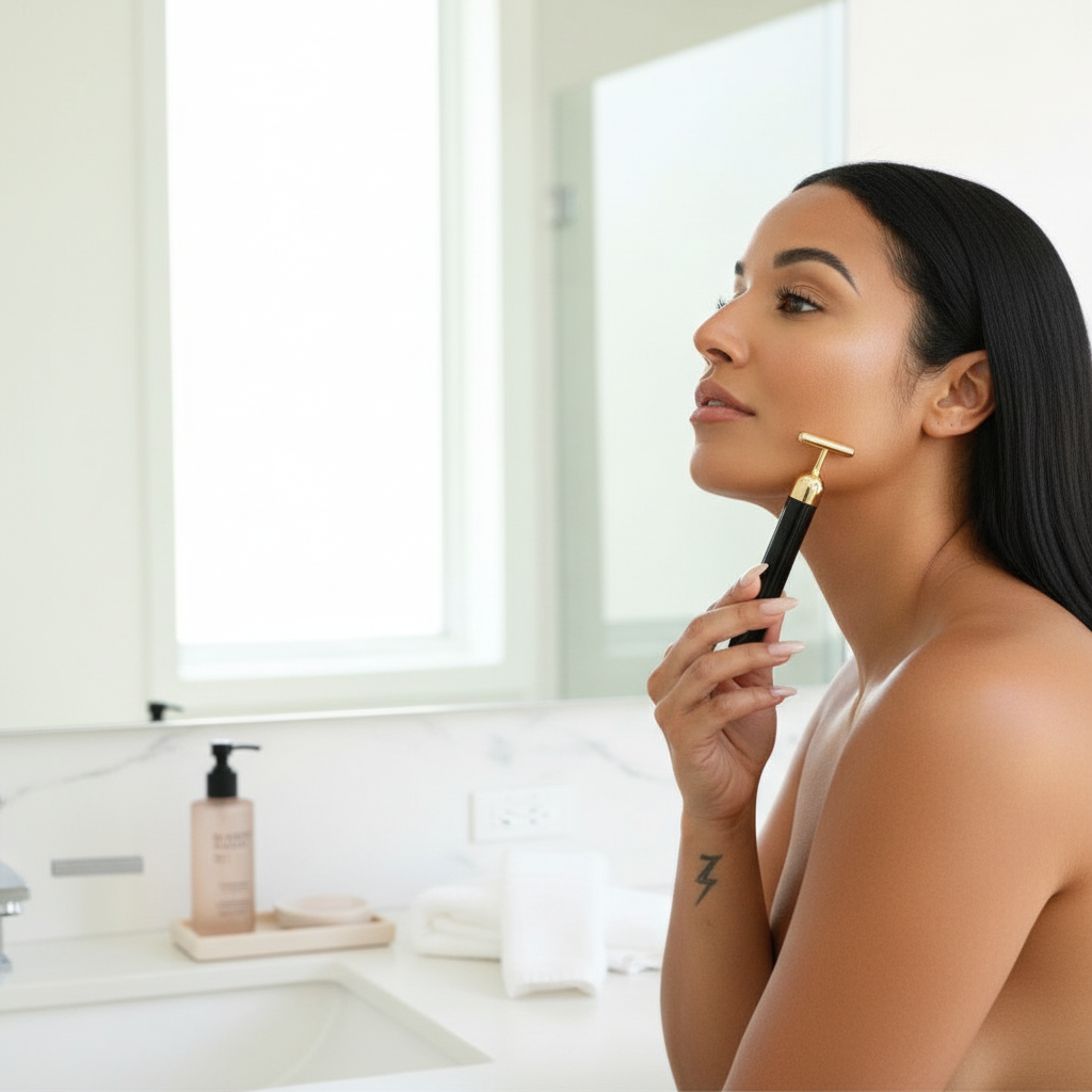 Der Vibrierender Gold Beauty Massagestab bringt das Spa direkt zu dir nach Hause.
